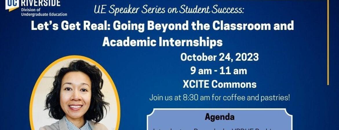 On Tuesday, October 24, 2023, the Division of Undergraduate Education hosted its second UE Speaker Series on Student Success, highlighting the importance of high-impact practices for UCR undergraduate students. The XCITE Center for Teaching and Learning in the Rivera Library hosted the event to continue promoting a space for dialogue and cross-collaboration for UCR staff, faculty, and administrators.